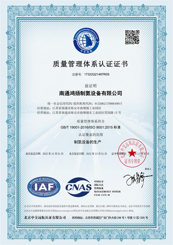 南通鴻揚制氮設備有限公司 >> 質量體系
